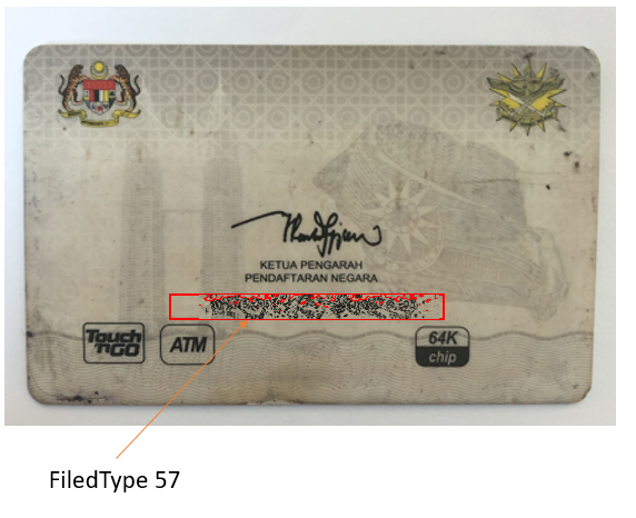 <figure><img src="https://4019998022-files.gitbook.io/~/files/v0/b/gitbook-x-prod.appspot.com/o/spaces%2FRYsITG7N76MNv67B20iW%2Fuploads%2Fk93SKPb6bWeBn3I11bdO%2Fimage.png?alt=media&#x26;token=21295f7f-79e6-402e-897e-a5771870add3" alt=""><figcaption><p>Old MyKad Back</p></figcaption></figure>